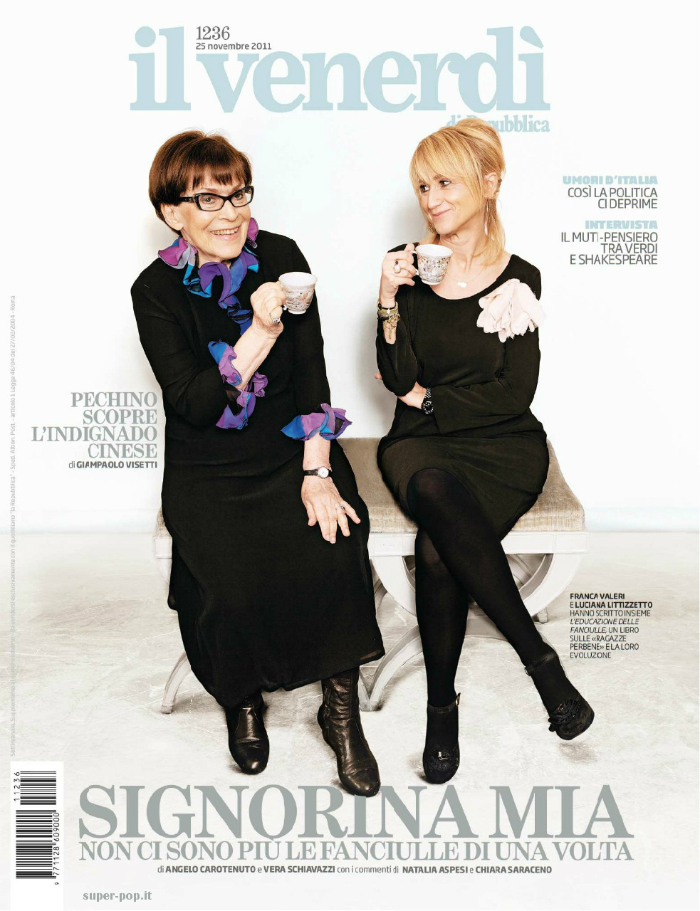 Franca Valeri e Luciana Littizzetto sono in copertina su "Il Venerdi di Repubblica" allegato a "La Repubblica" di oggi, venerdì 25 novembre 2011.