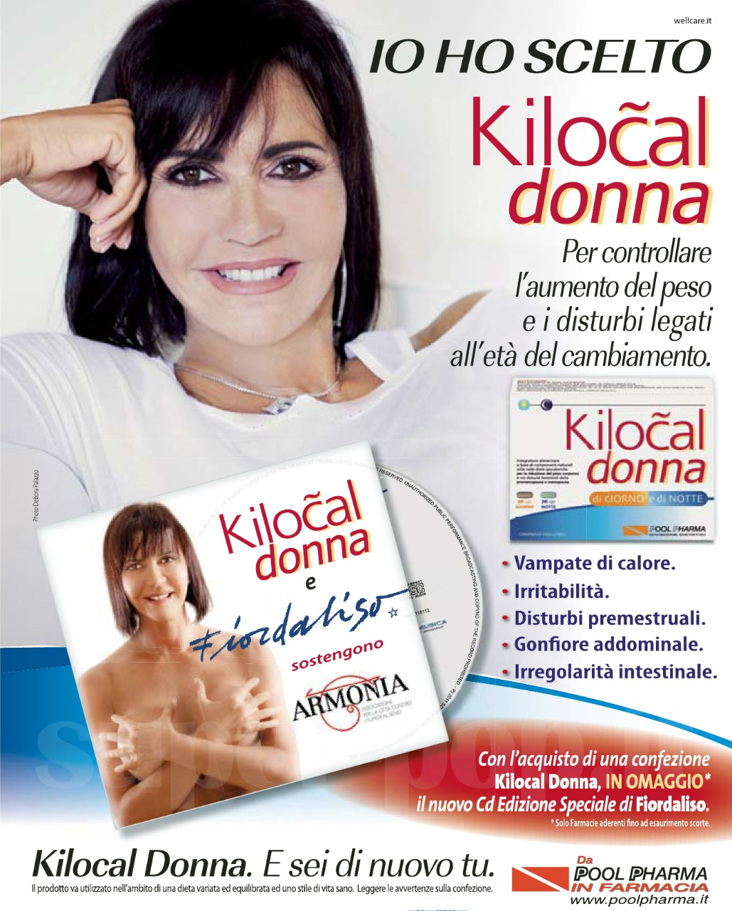 Tranquilli. Se lo sconforto e la disperazione vi affliggeva di giorno in giorno poichè credevate che Fiordaliso si fosse ritirata dalle scene, adesso potete finalmente tirare un sospiro di sollievo. La nostra "Marina" è tornata, più in forma (o formosa) che mai e ci ricorda che "Kilocal donna aiuta a controllare il peso, le vampate di calore e l'irritabilità... con Kilocal donna sei di nuovo tu!"